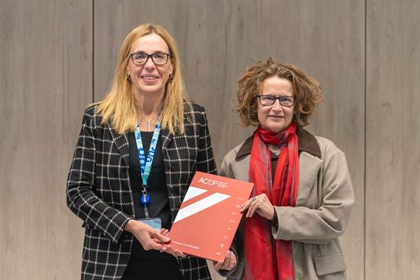 Fotografia01 (d’esquerra a dreta): Àngels Fitó, rectora de la Universitat Oberta de Catalunya i nova presidenta ACUP i Laia de Nadal, rectora de la Universitat Pompeu Fabra, presidenta sortint i nova secretària ACUP.